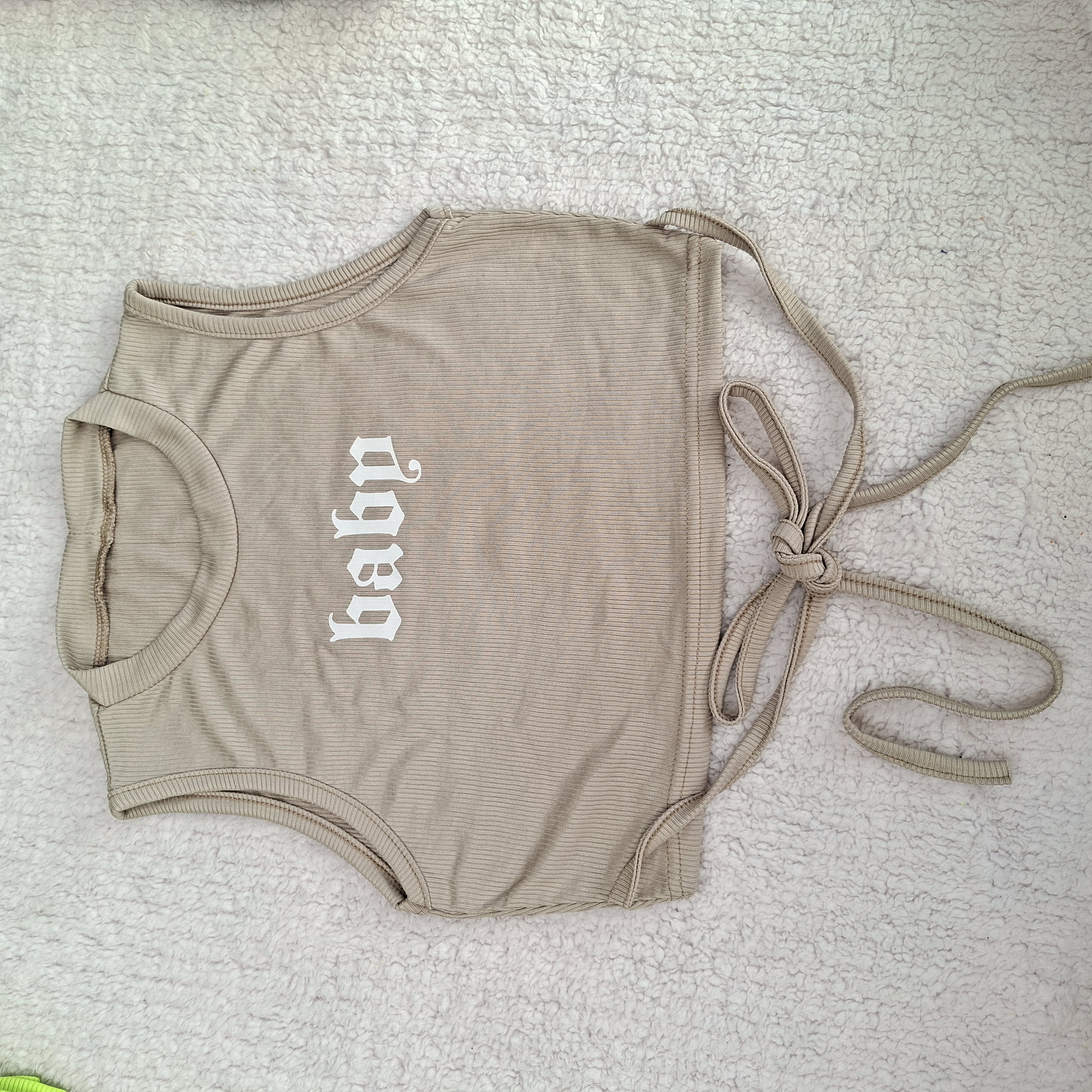 کراپ تاپ کبریتی بندی baby رنگبندی یاسی کرم نارنجی نئون و مشکی در سفارش رنگ مورد نظر را ذکر کنید. برای تنخور به واتساپ پیام دهید.