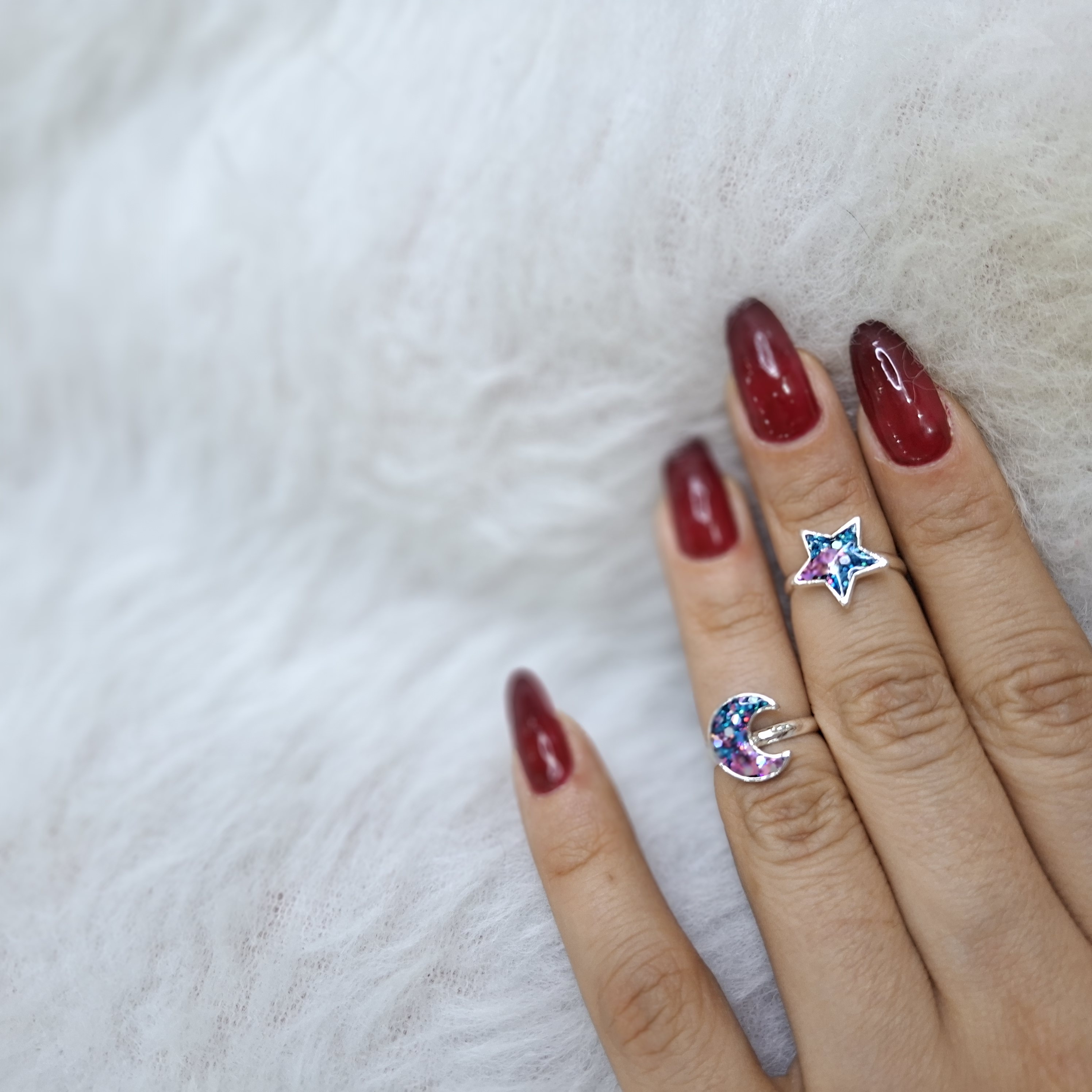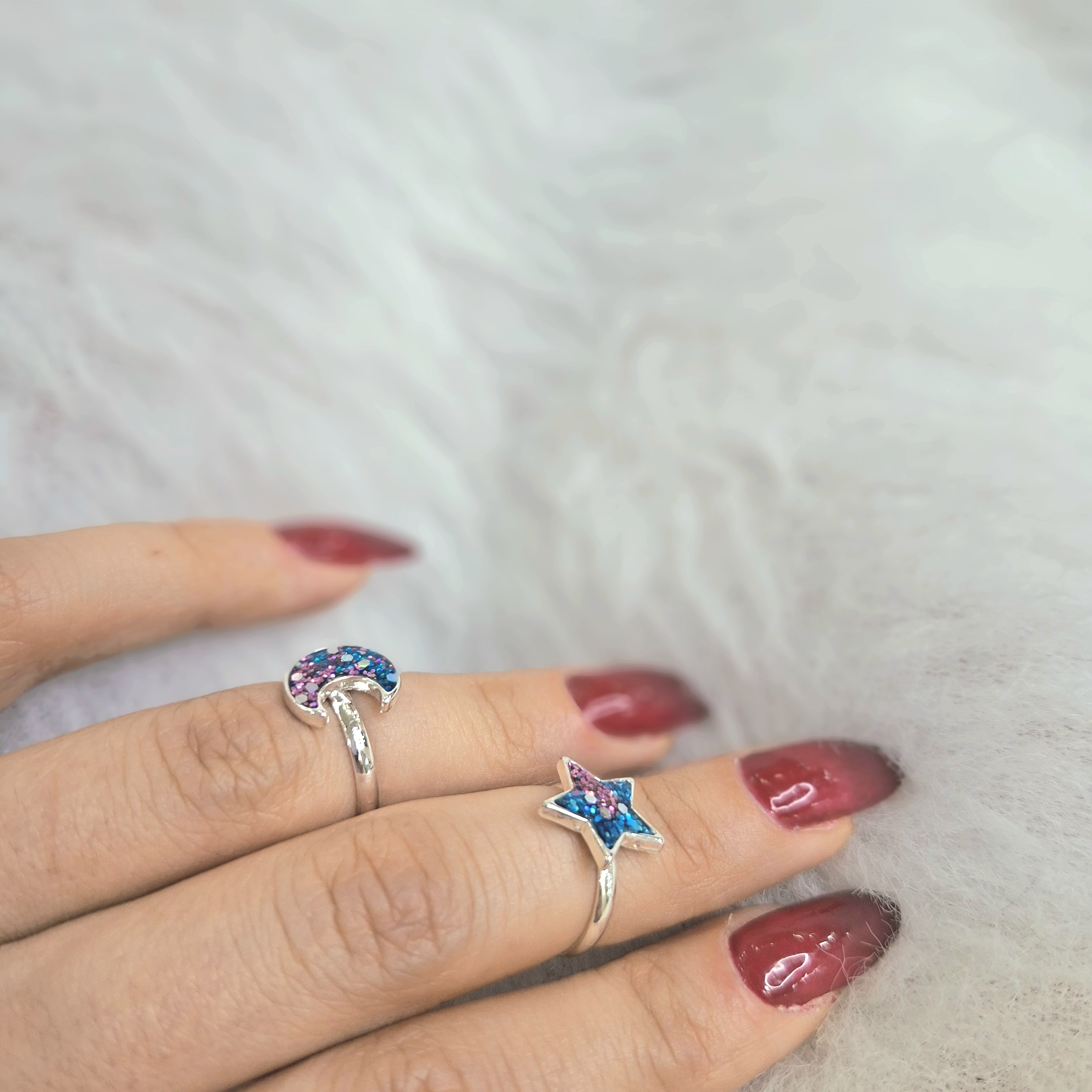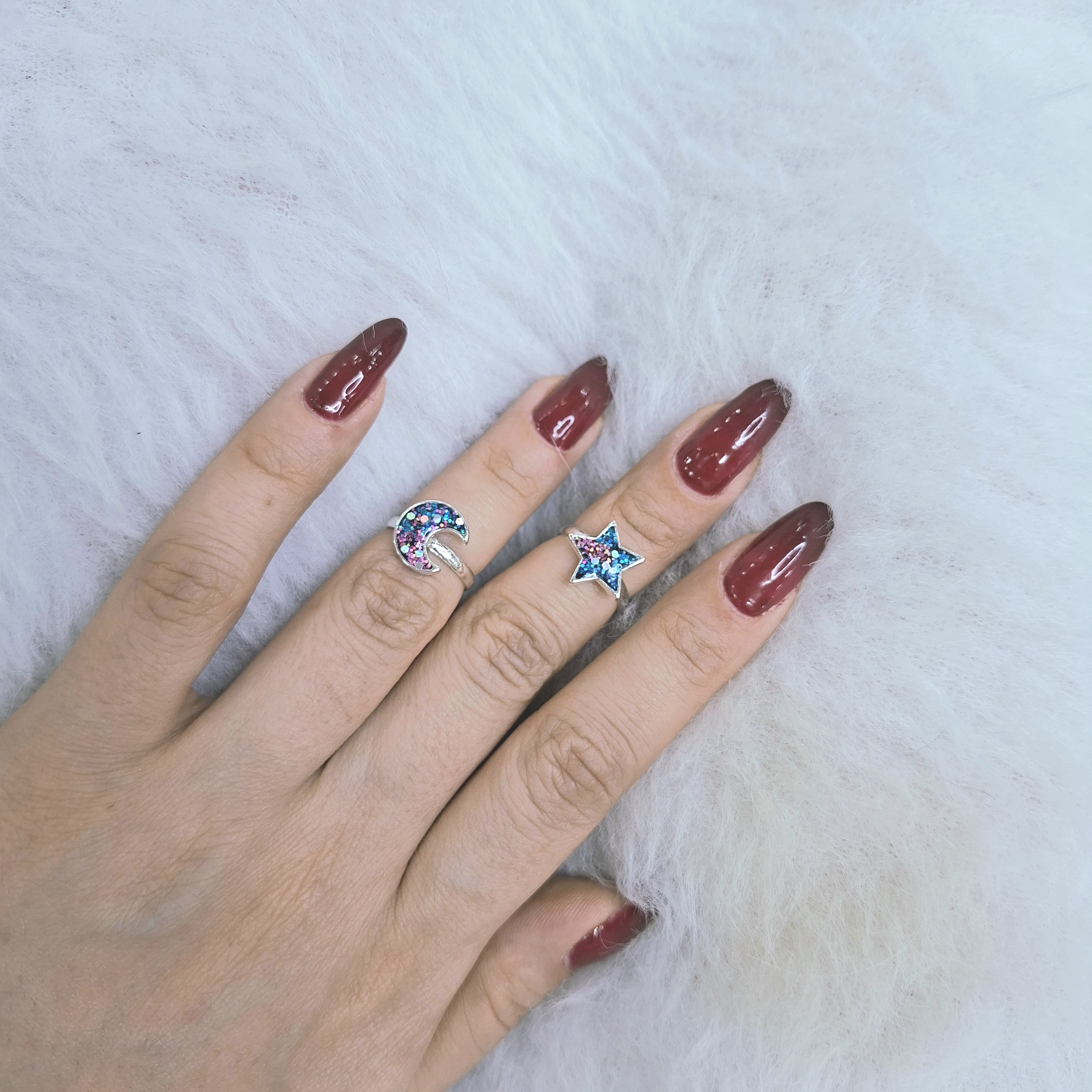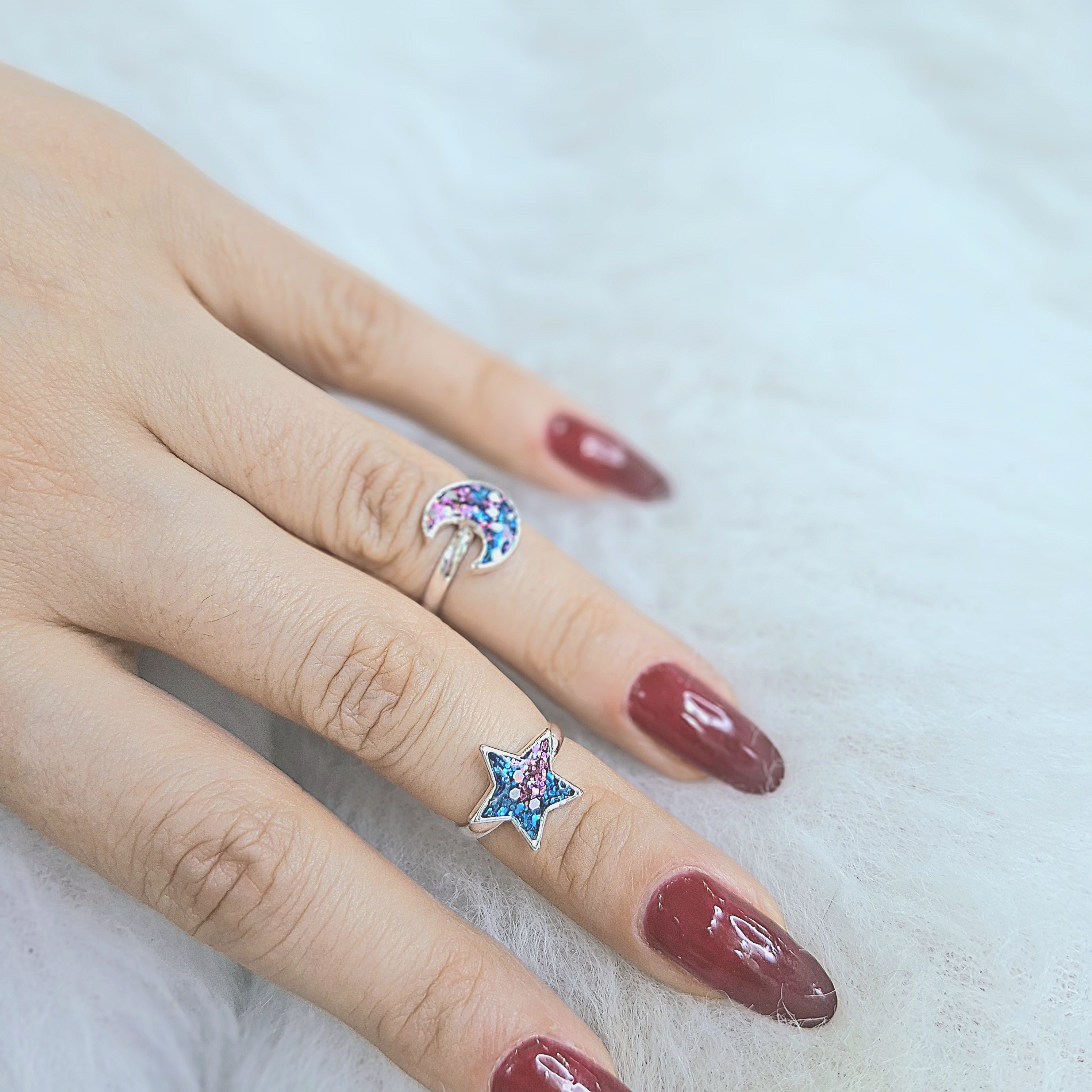 انگشتر بند انگشتی ماه و ستاره نقره ای رنگ ثابت شنی رنگی