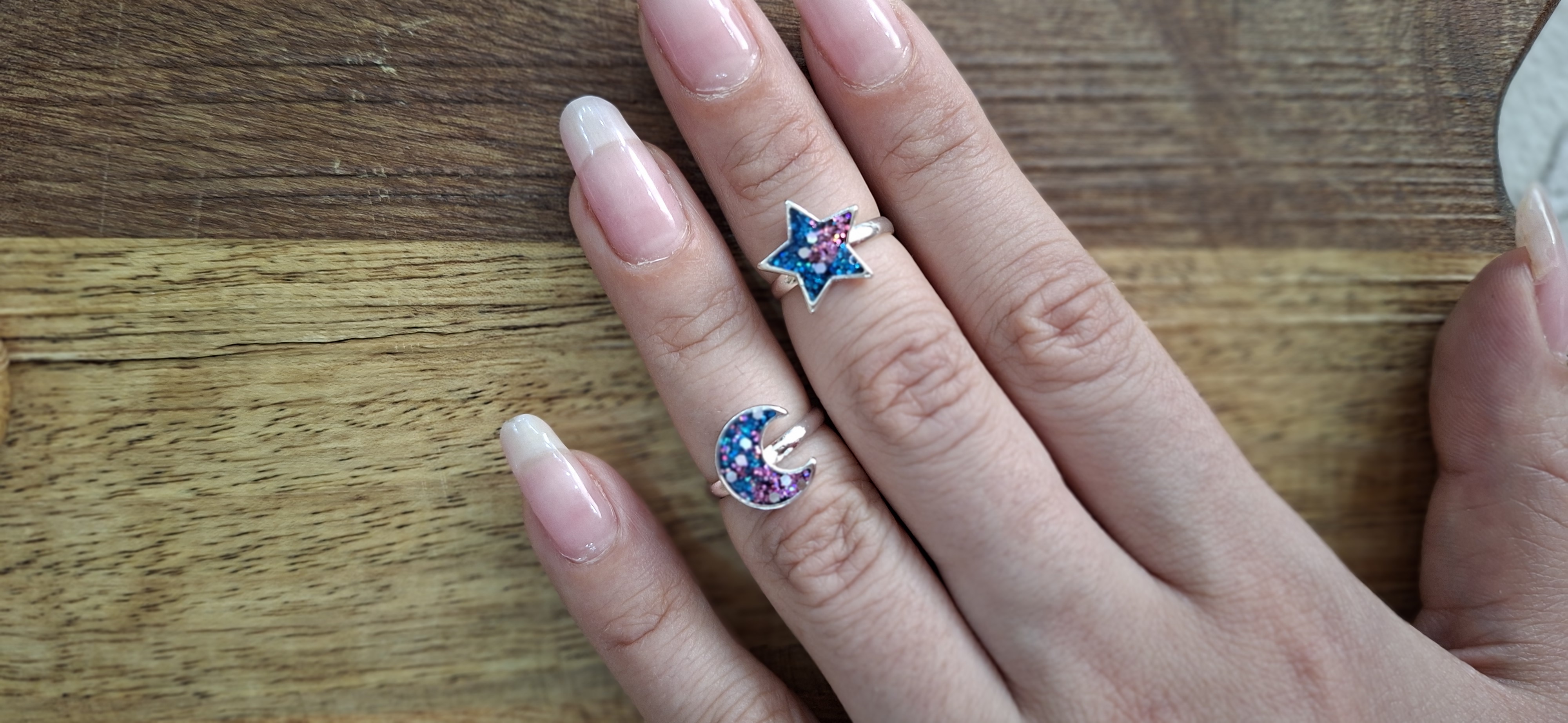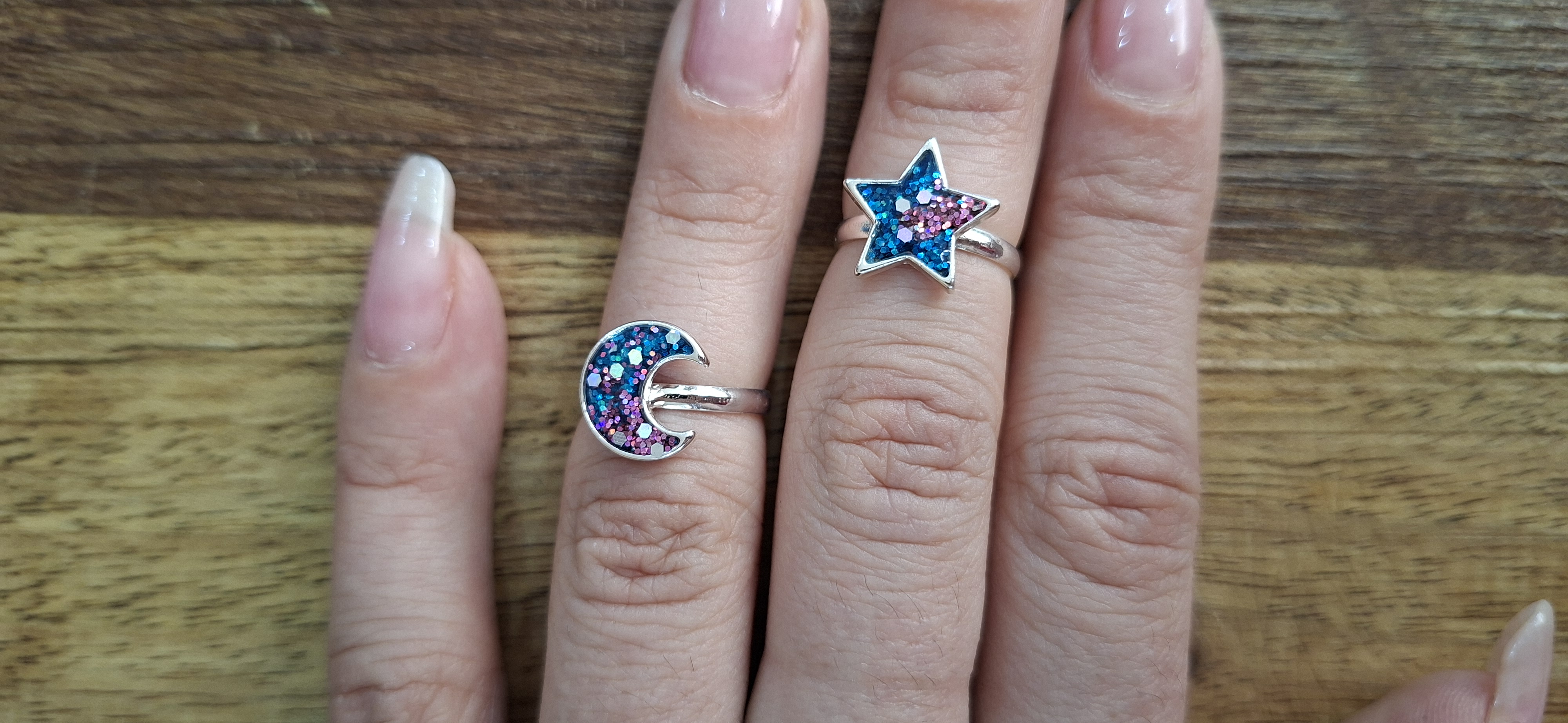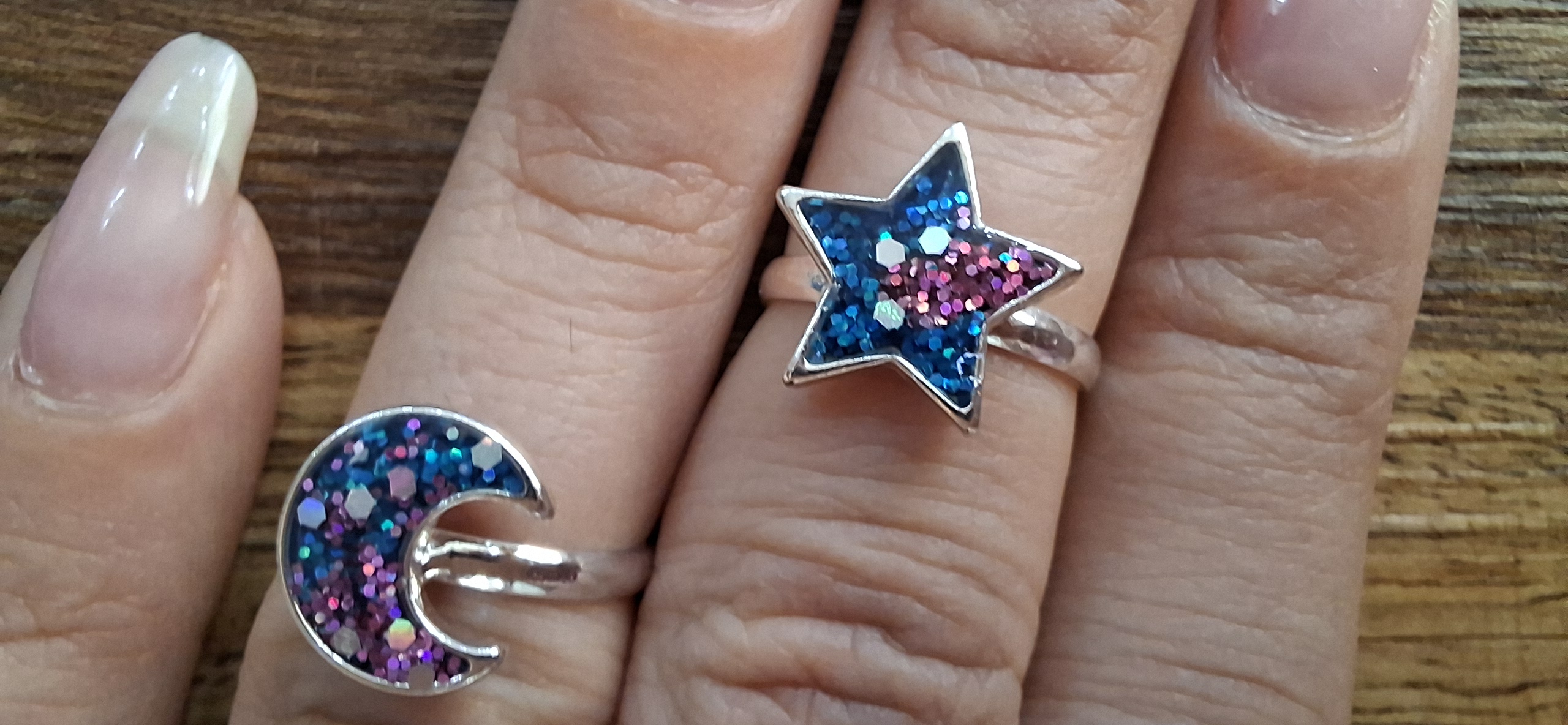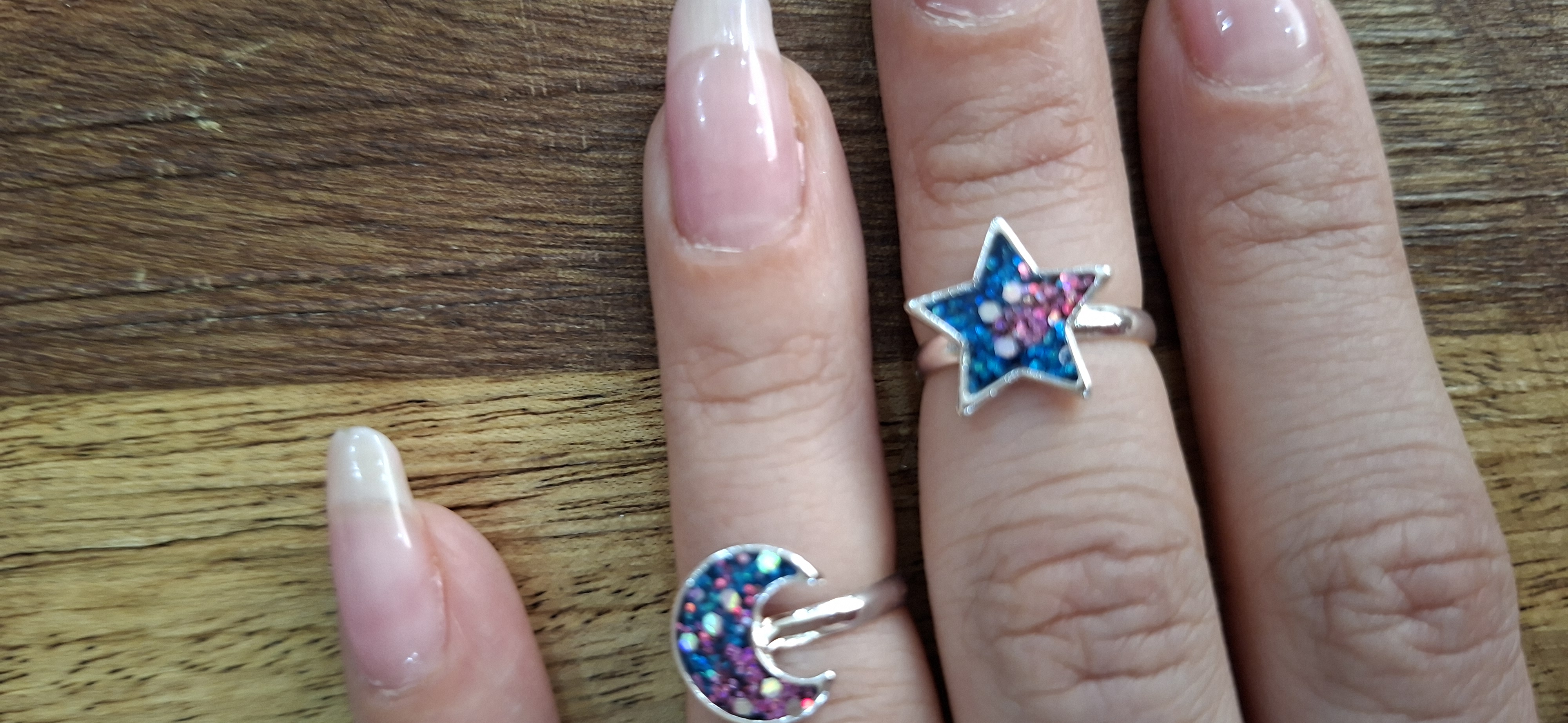 انگشتر بند انگشتی ماه و ستاره نقره ای رنگ ثابت شنی رنگی