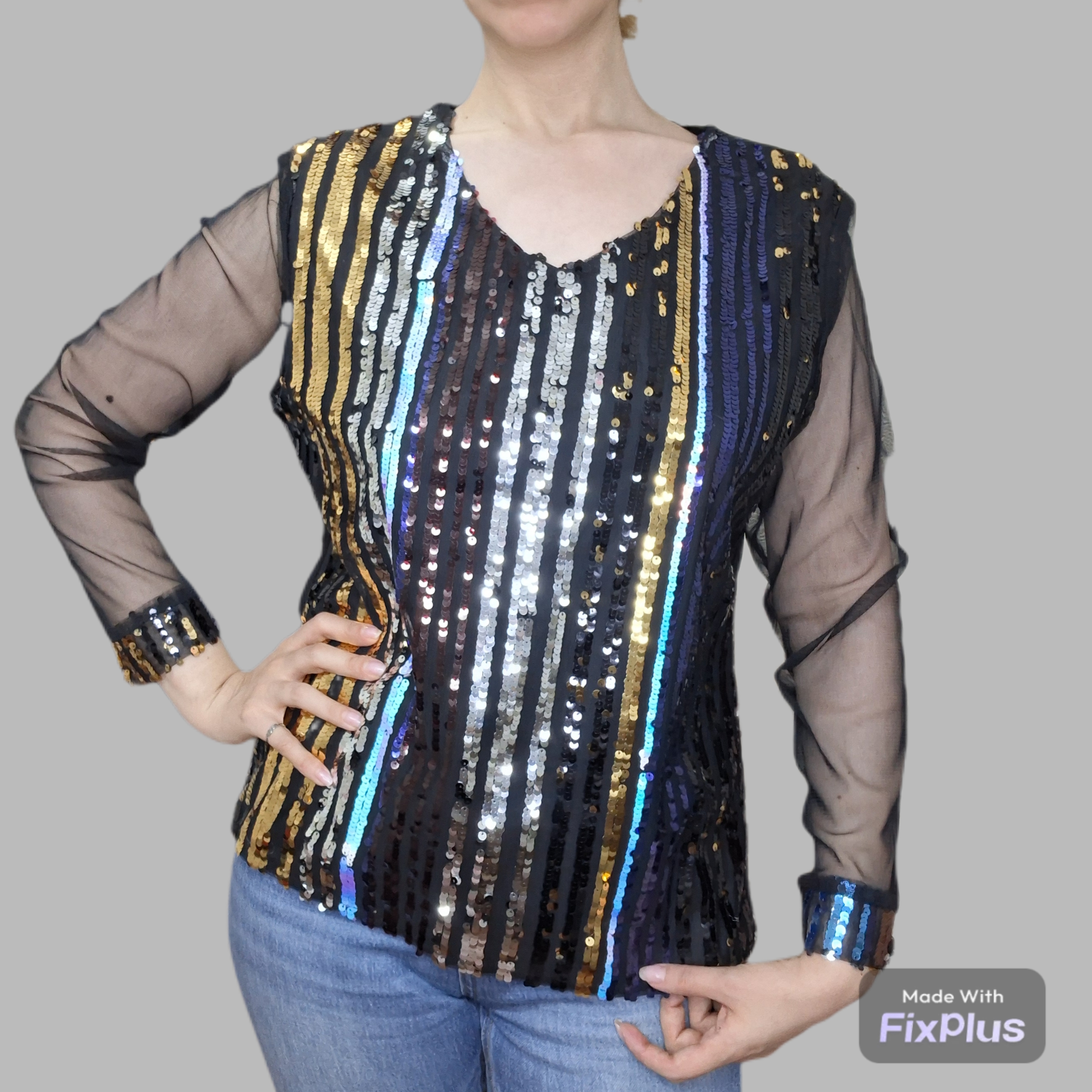ارزانترین شومیز زنانه تمام پولکی آستین حریر جنس عالی