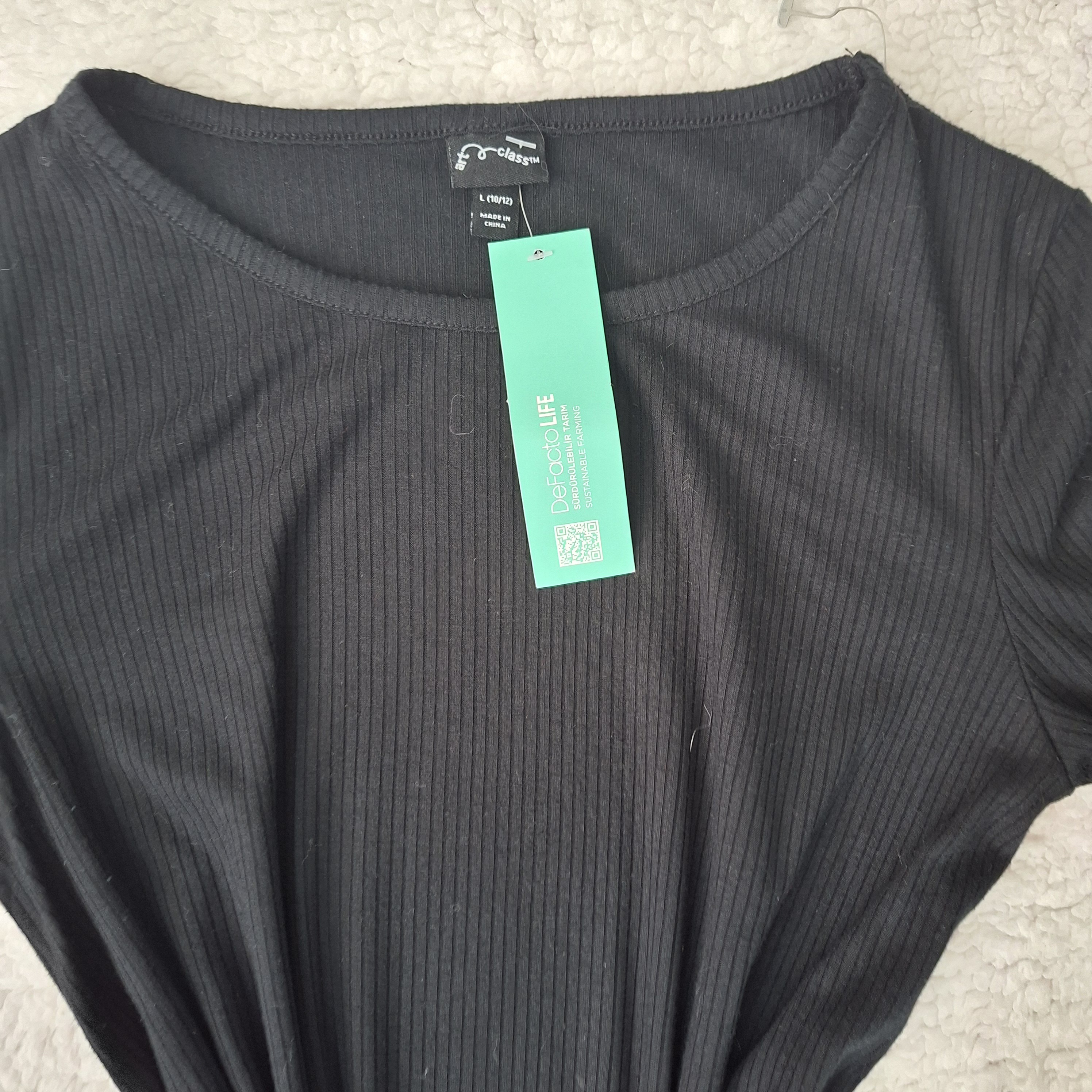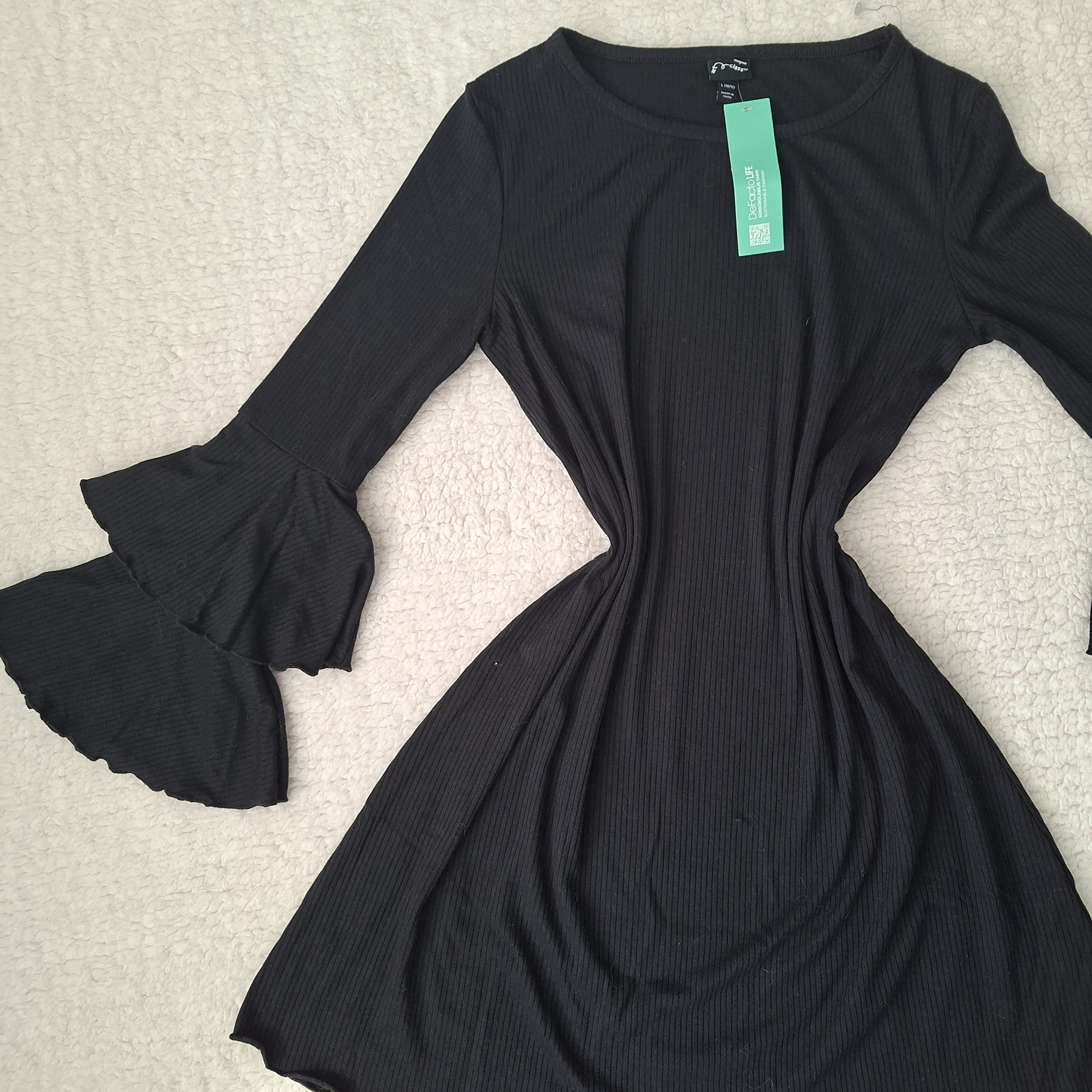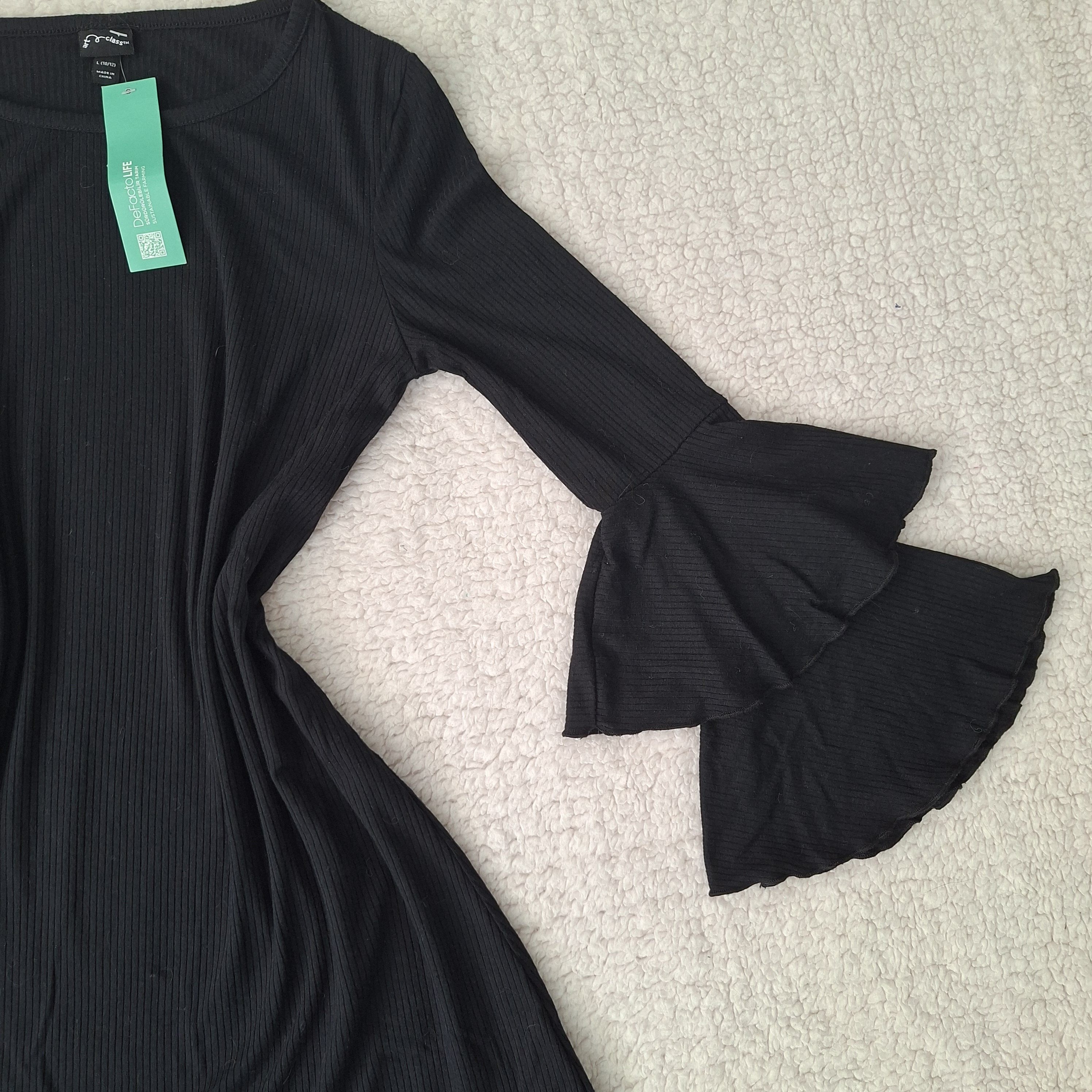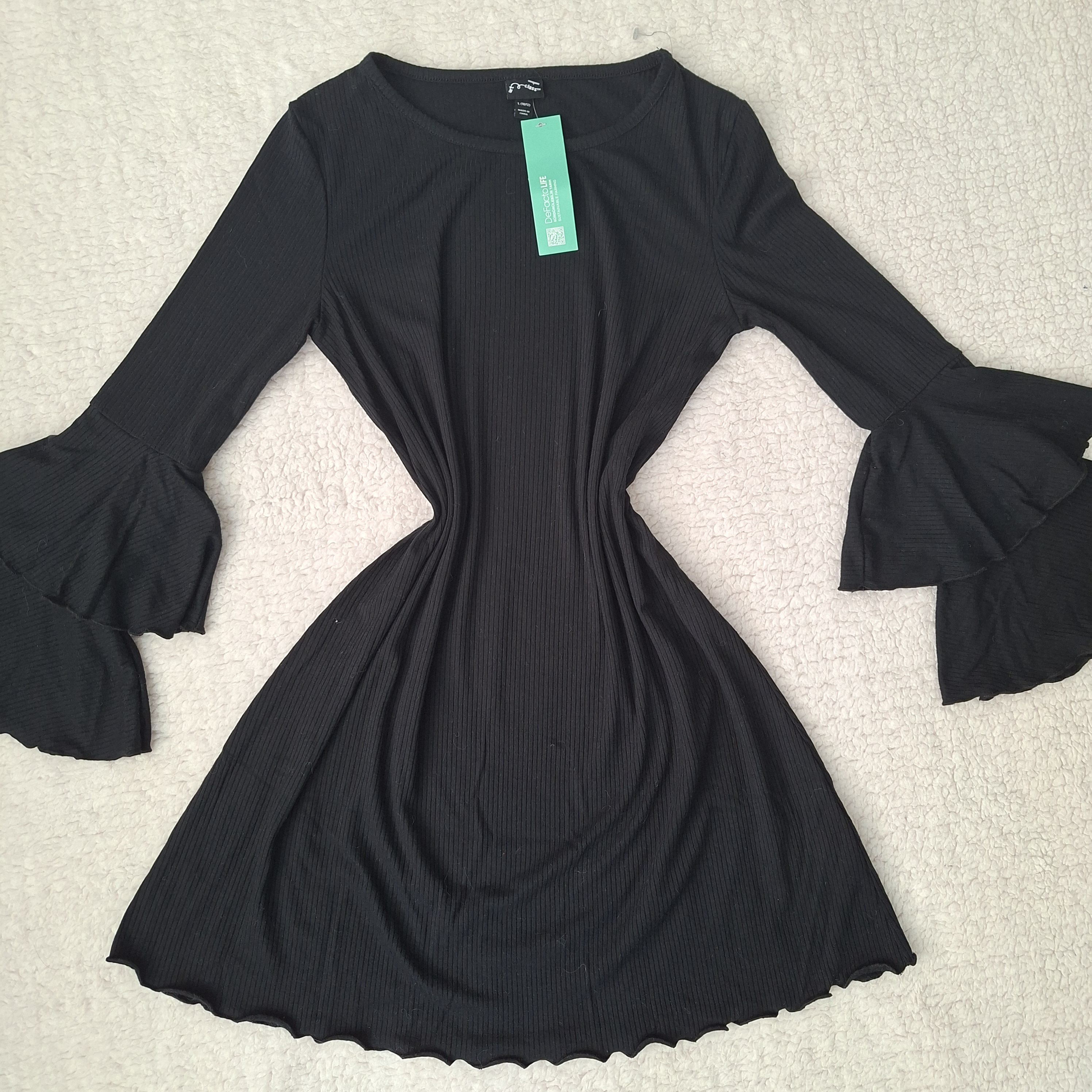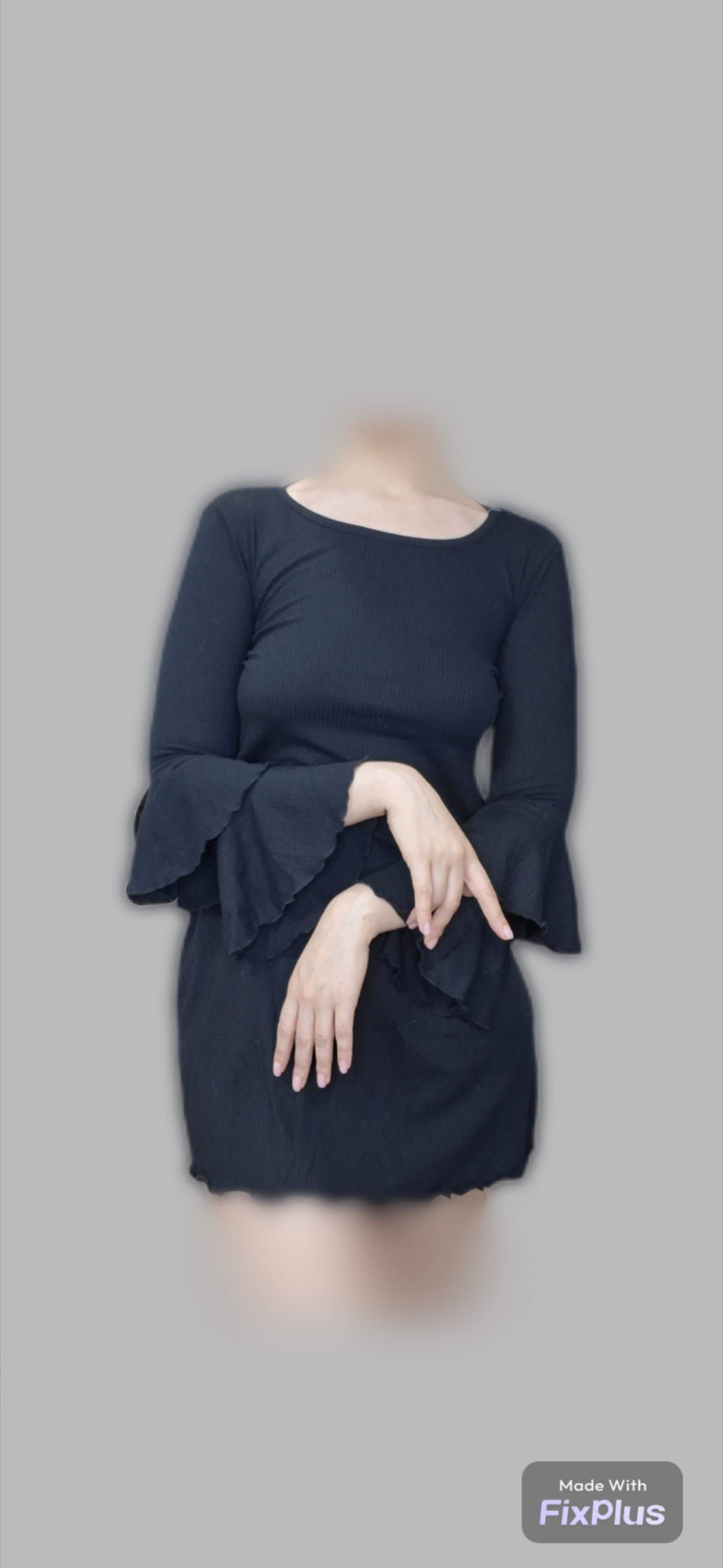 پیراهن کوتاه زنانه مدل آستین کلوش رنگ مشکی جنس کشباف ظریف سایز مدیوم