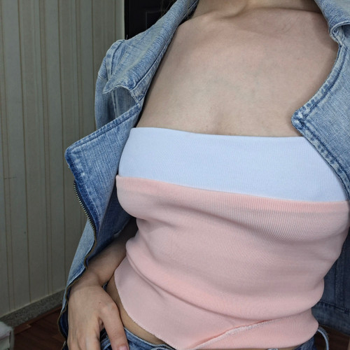 کراپ تاپ دکلته کشباف صورتی سایز ۳۸
