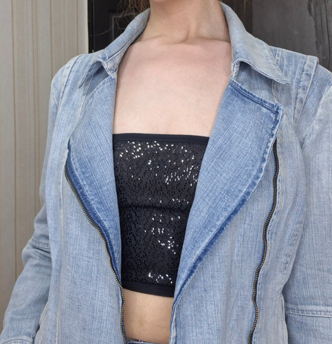 کراپ تاپ زنانه دکلته مدل باندی پولکی پشت کشباف