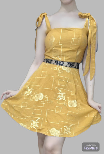پیراهن کوتاه زنانه کاپ دار کمر گیپور سایز ۳۸ رنگ خردلی
