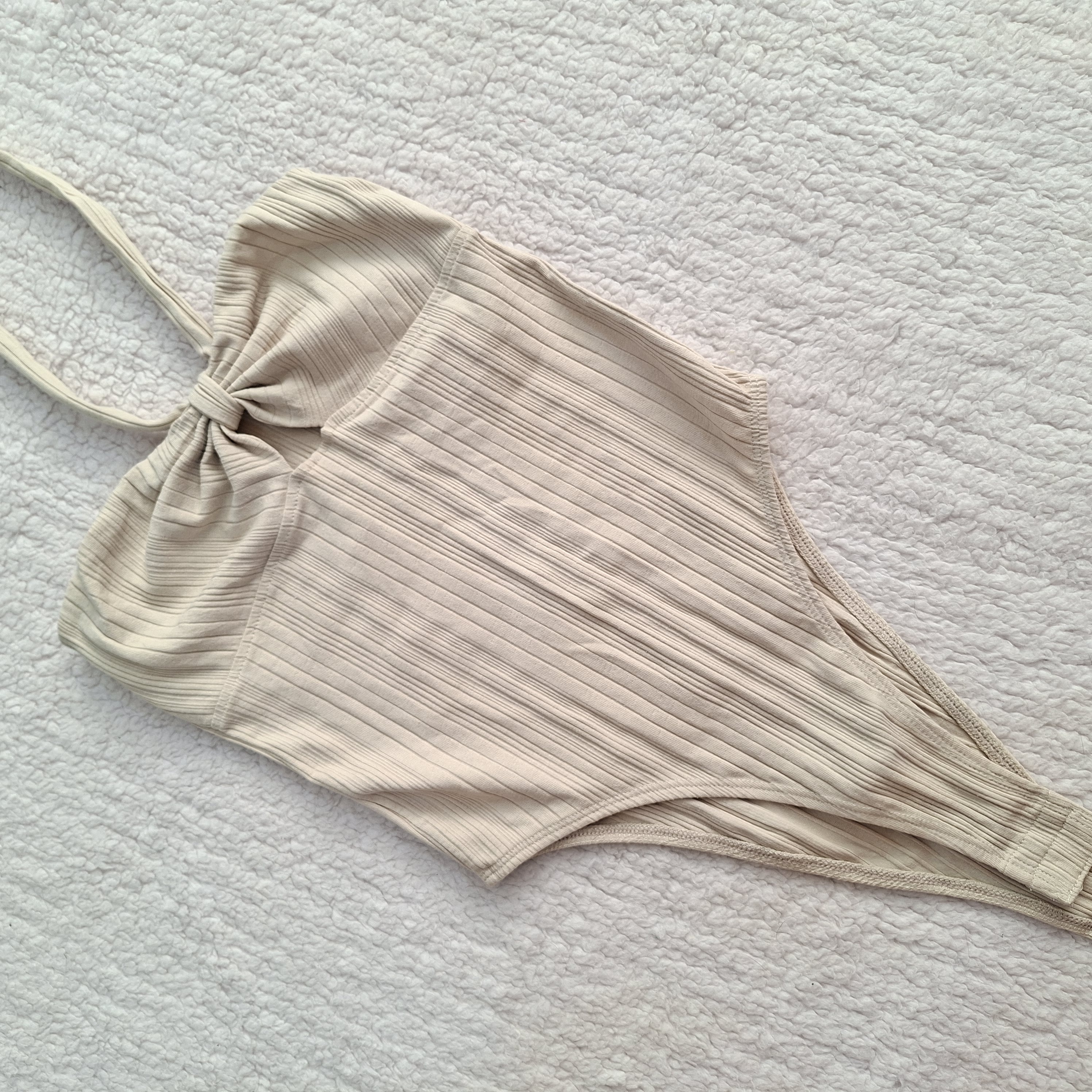 بادی زنانه مدل سینه گرهی ، برند zara ترک، کرم ، تن رنگ ، سایز مدیوم و اسمال