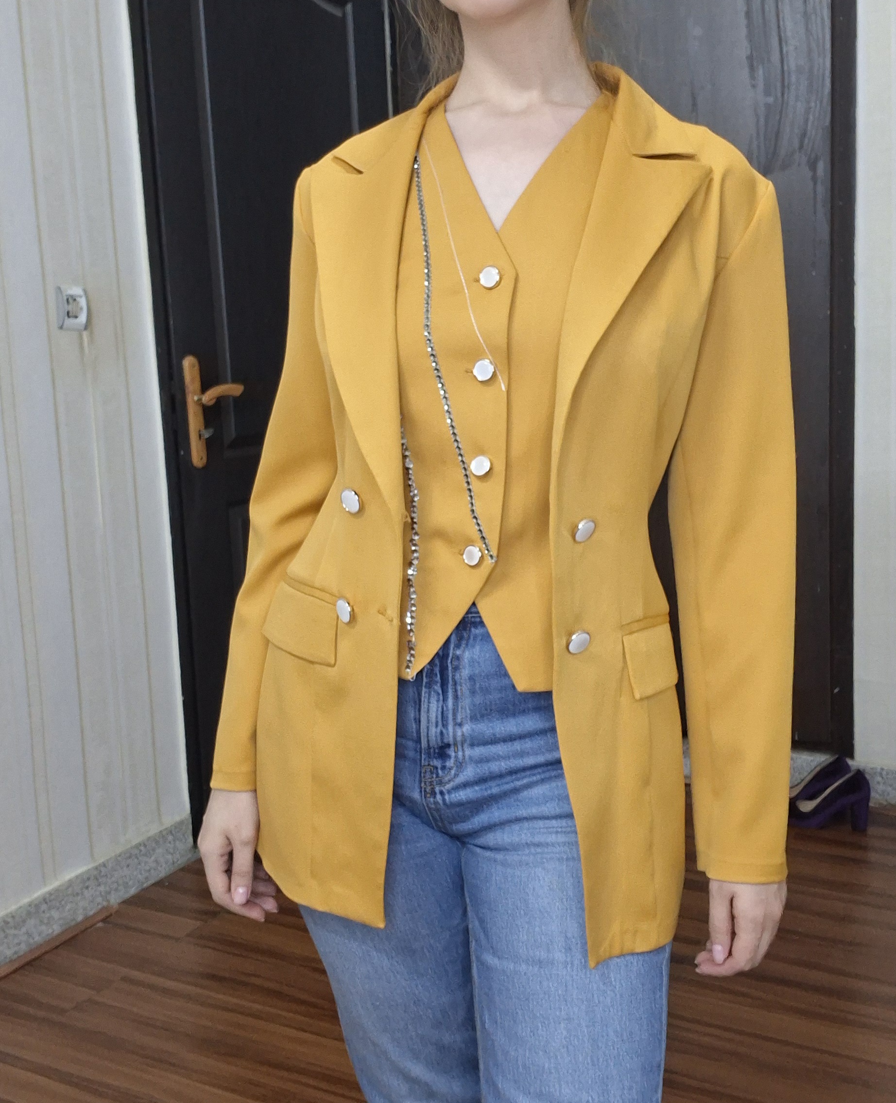 کت و جلیقه وست جواهردوزی زنانه رنگ خردلی سایز ۴۰