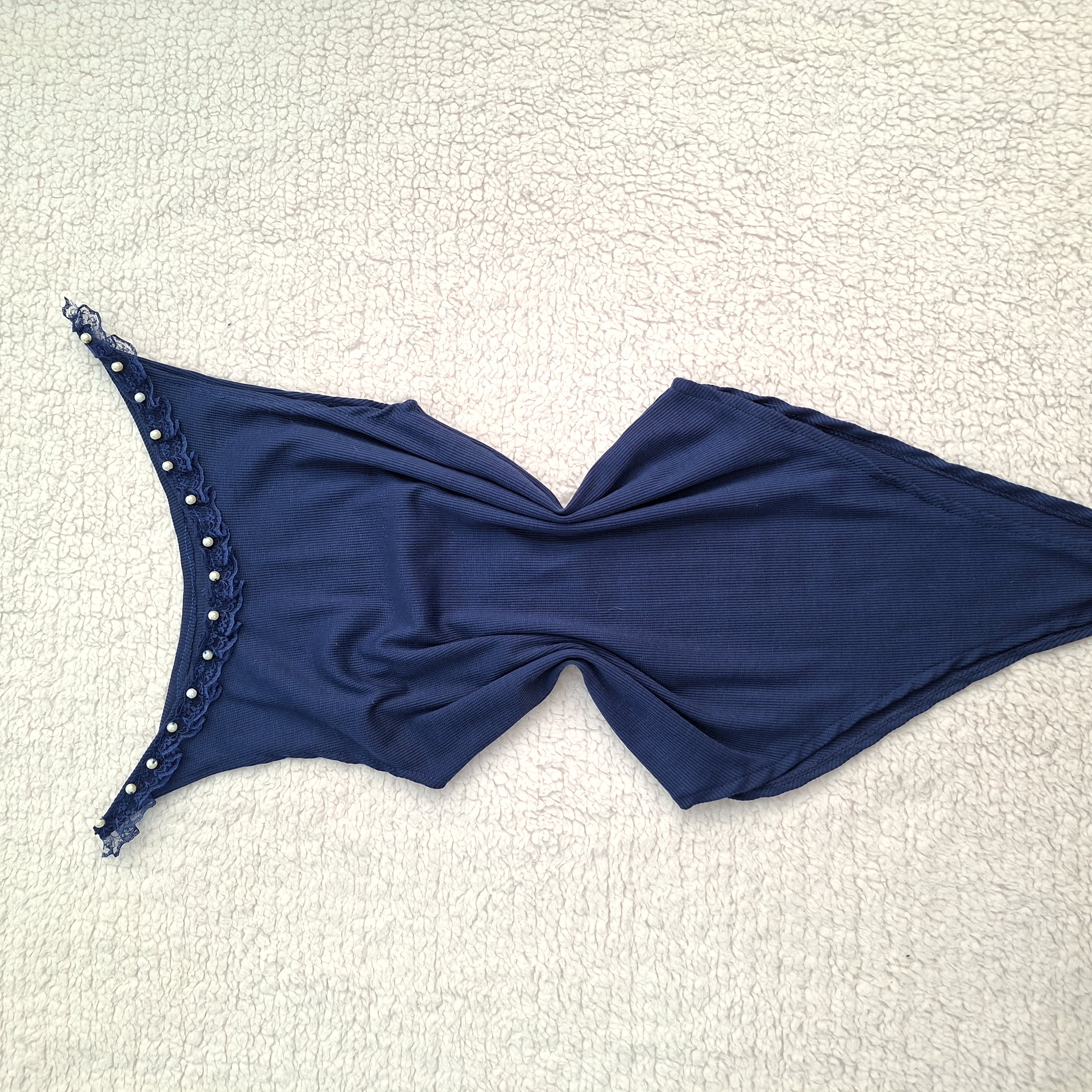 بادی زنانه جنس تریکو کشباف یقه تور و مروارید فری سایز تا ۴۰ رنگ سورمه ای