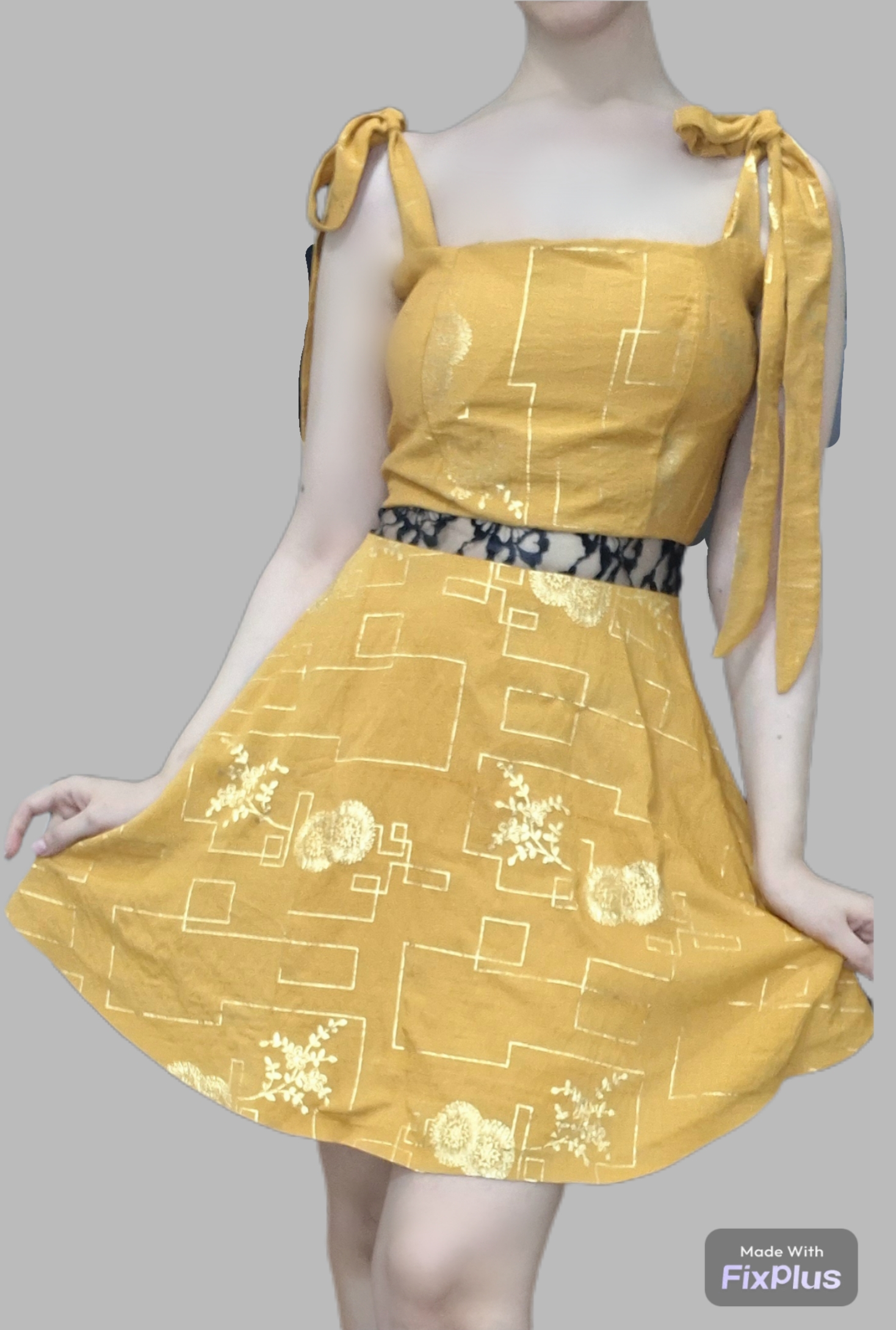 پیراهن کوتاه زنانه کاپ دار کمر گیپور سایز ۳۸ رنگ خردلی