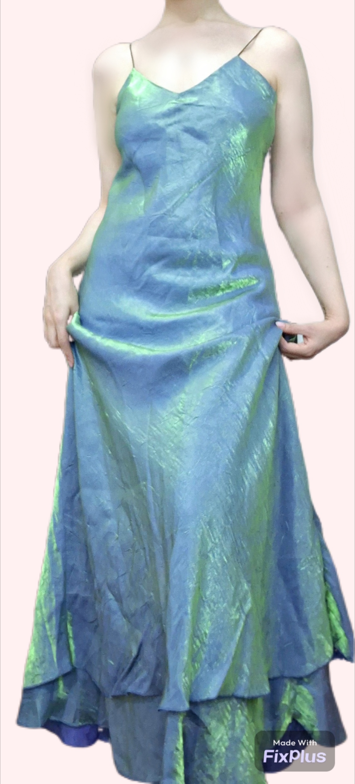 پیراهن تافته ماکسی بلند زنانه بند ماکارونی فرانسوی رنگ سبز آبی بنفش(هفت رنگ(