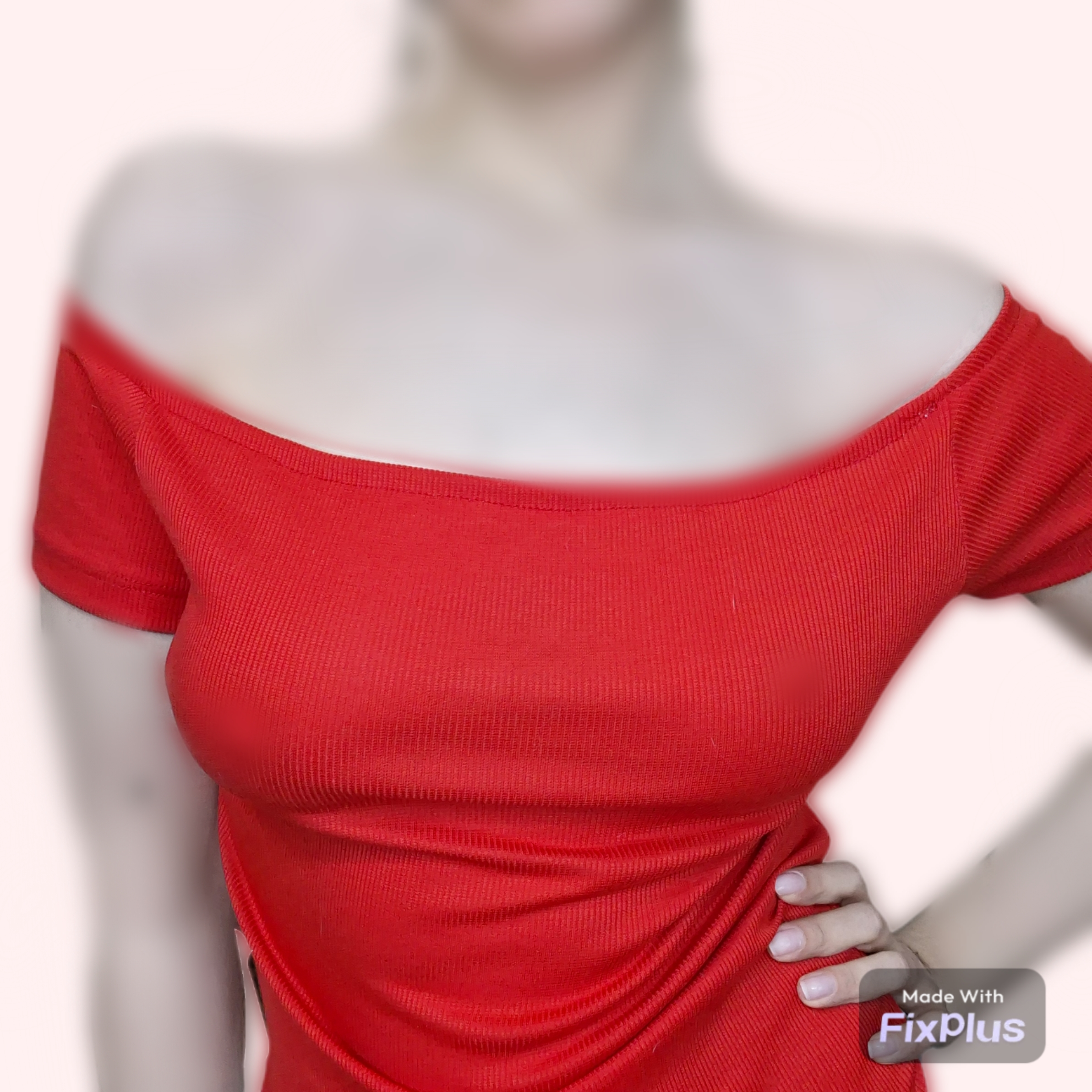 کراپ تاپ دکلته زنانه کشباف فری سایز رنگ قرمز