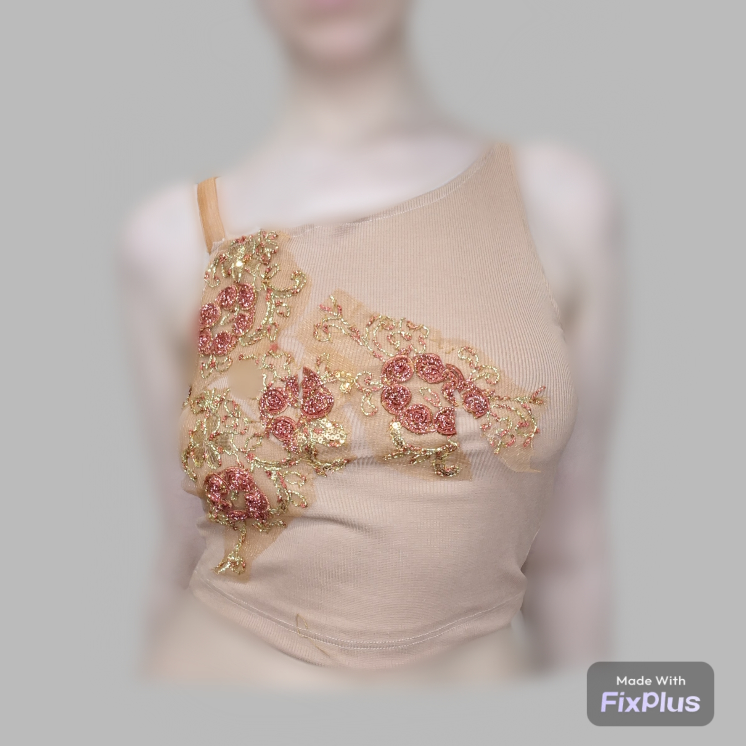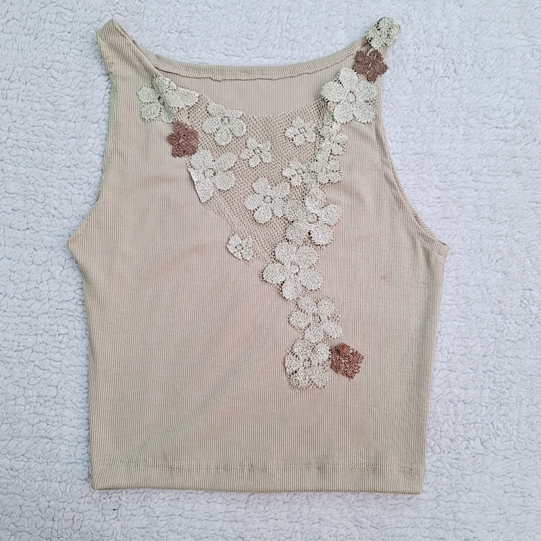 کراپ سوتین زنانه بژ روشن قلاب دوزی شده