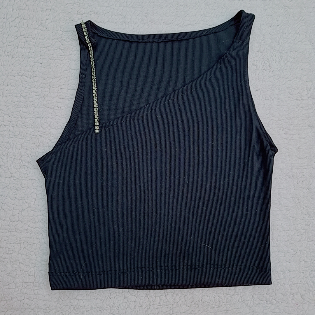 کراپ تاپ زنانه مجلسی مدل رومی زنجیری سایز اسمال و مدیوم رنگ مشکی