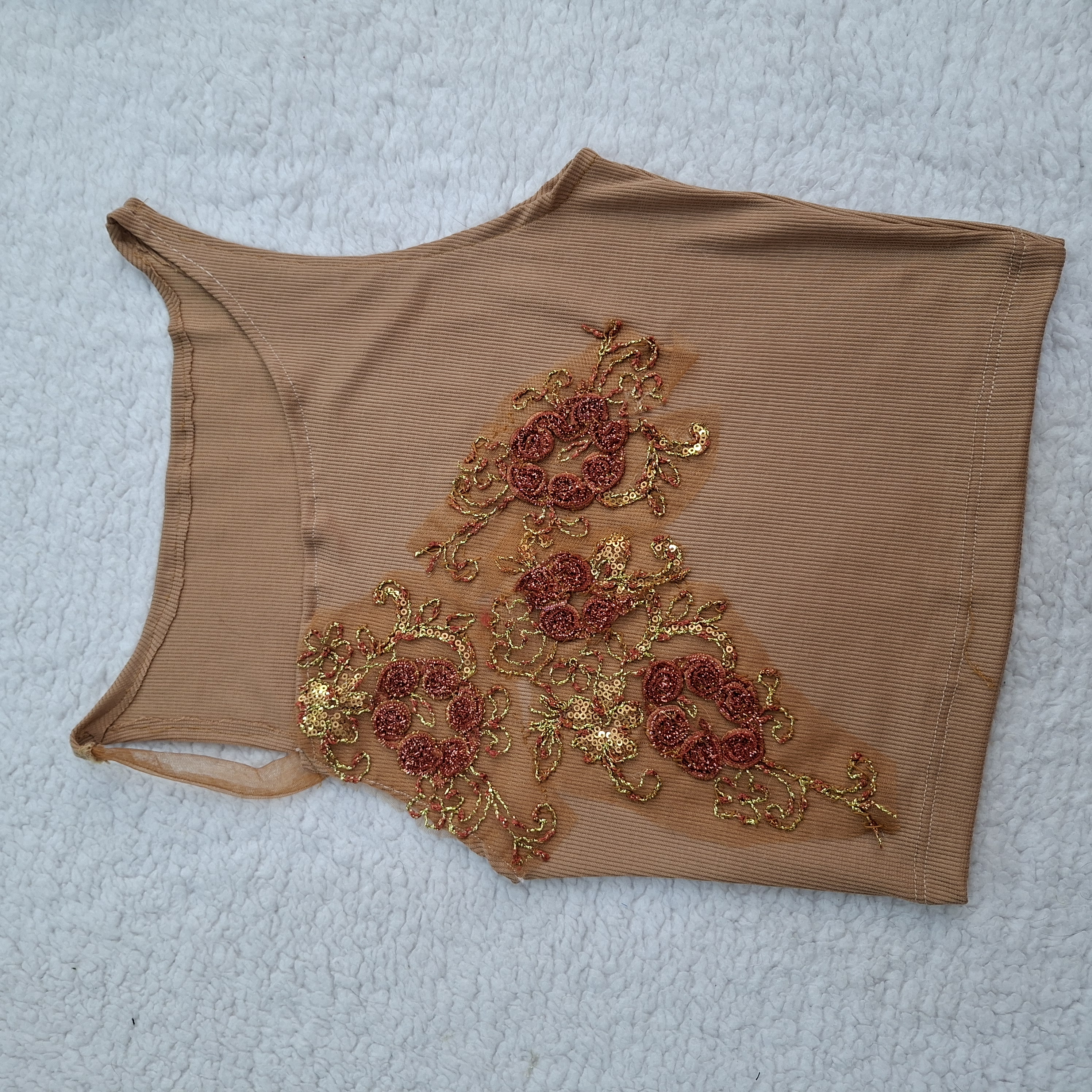 کراپ تاپ زنانه مدل مجلسی گلدوزی رنگ کرم بژ سایز مدیوم و اسمال